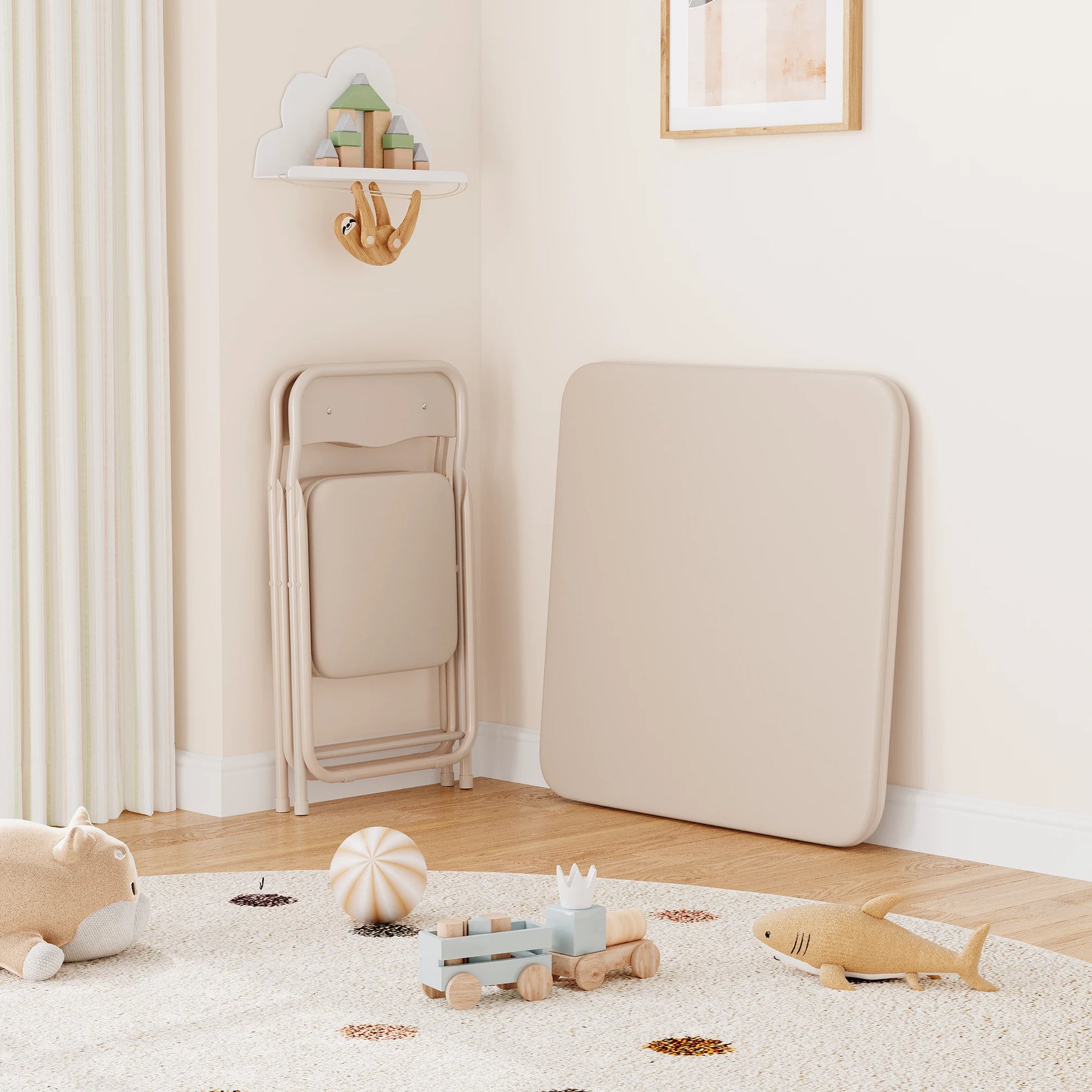 Boys and Girls Folding Table and Chairs Set of 3 Portable Table and Chair with PU Soft Cushion for Eating, Reading and Playing