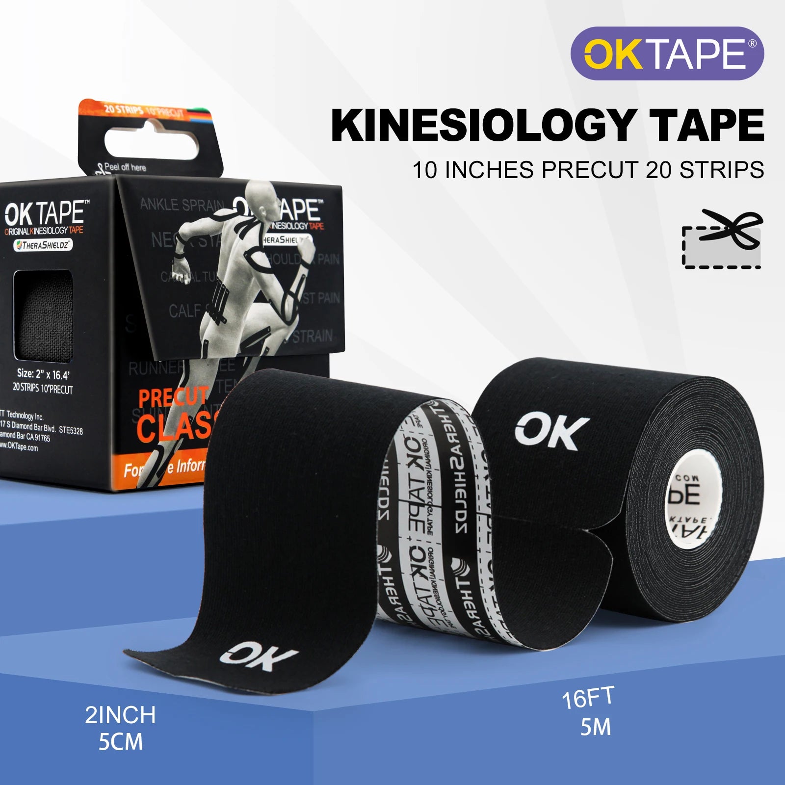 Ok Tape Kinesiology Tape 5cm Precut 20 Strips Latex Free