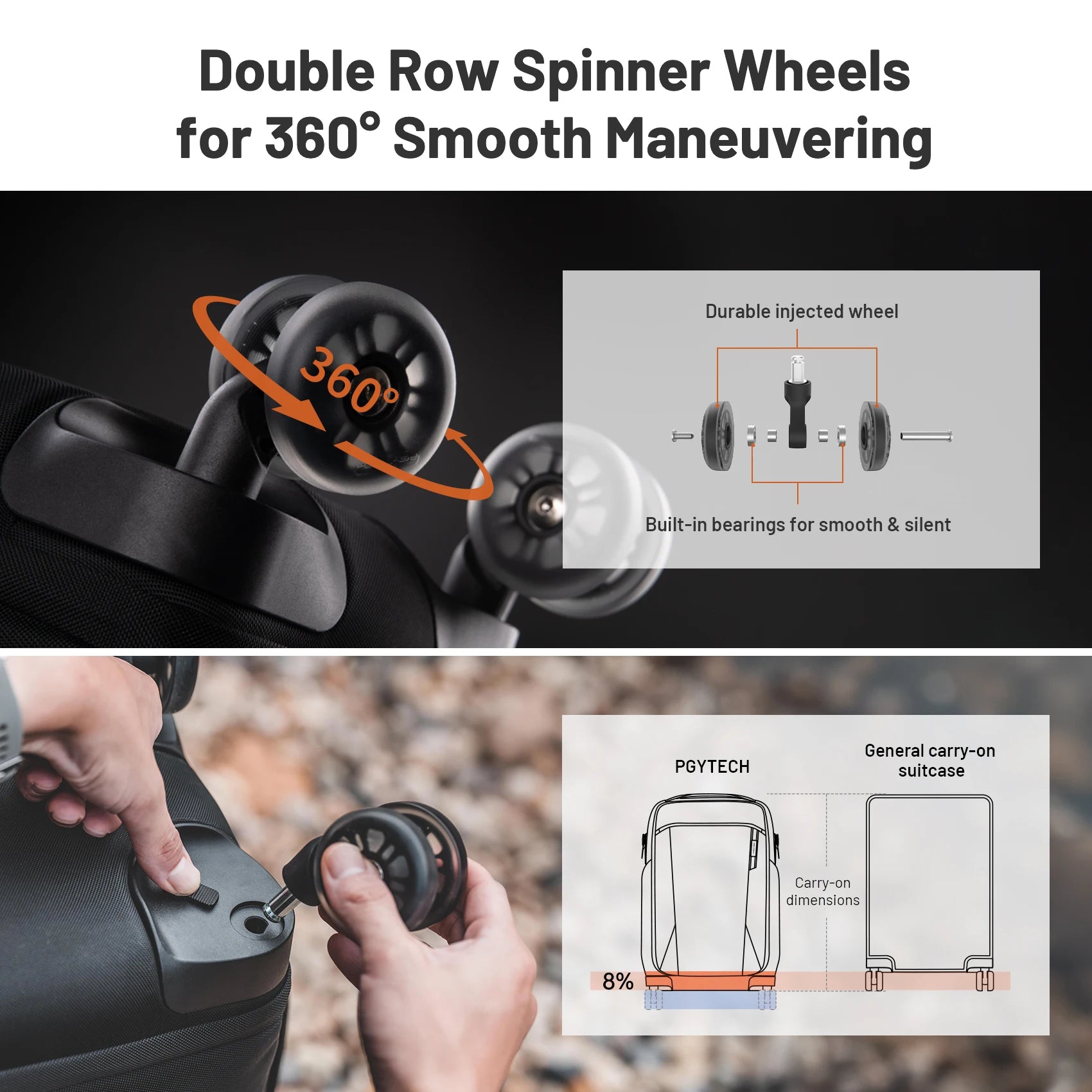 - PU double-row wheels deliver durability and smooth rolling action with quick-release for extra space and comfort.